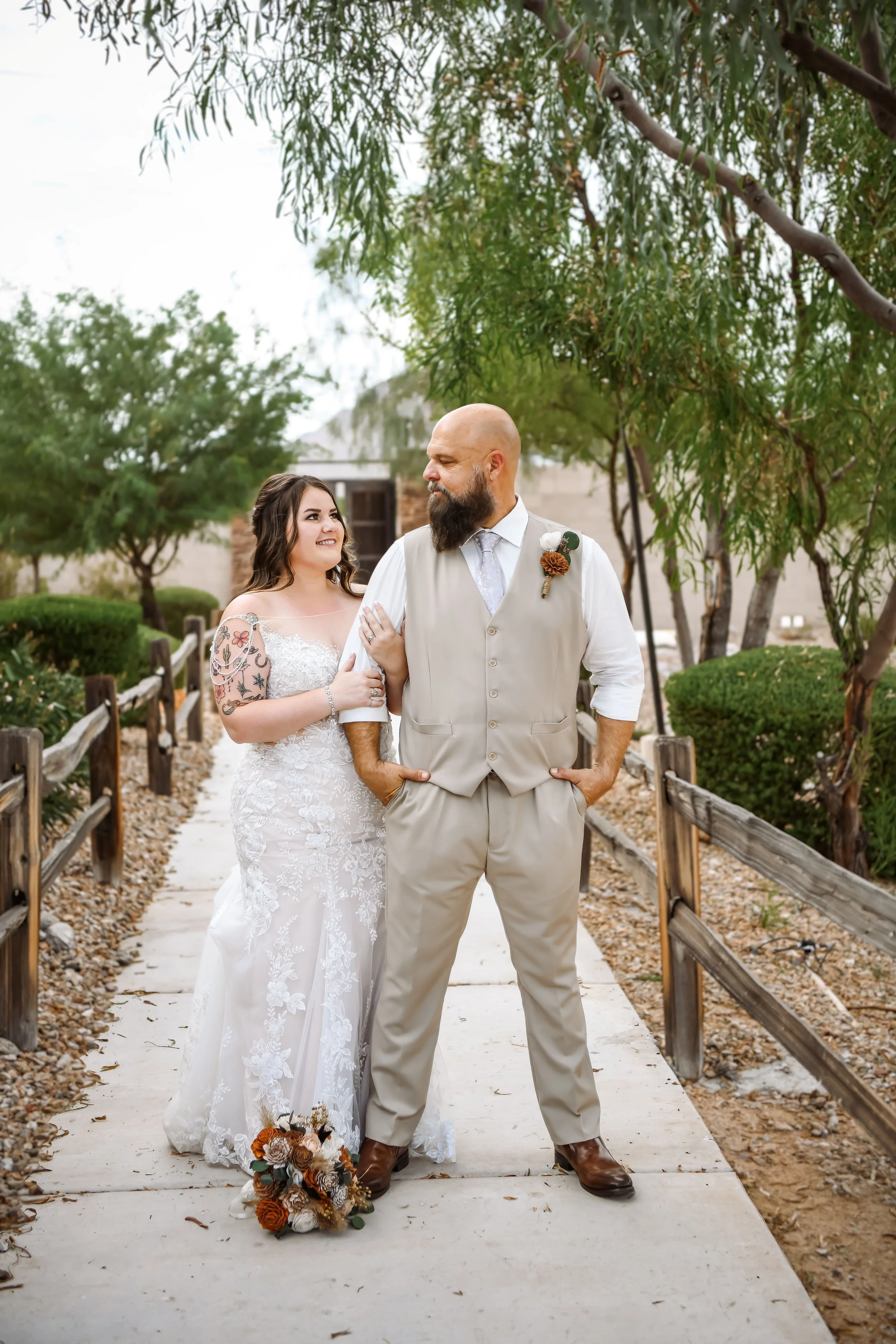 Bridal gowns often need multiple fittings. Start alterations at least 6–8 weeks out, especially during peak wedding season in Phoenix when seamstresses are in high demand.